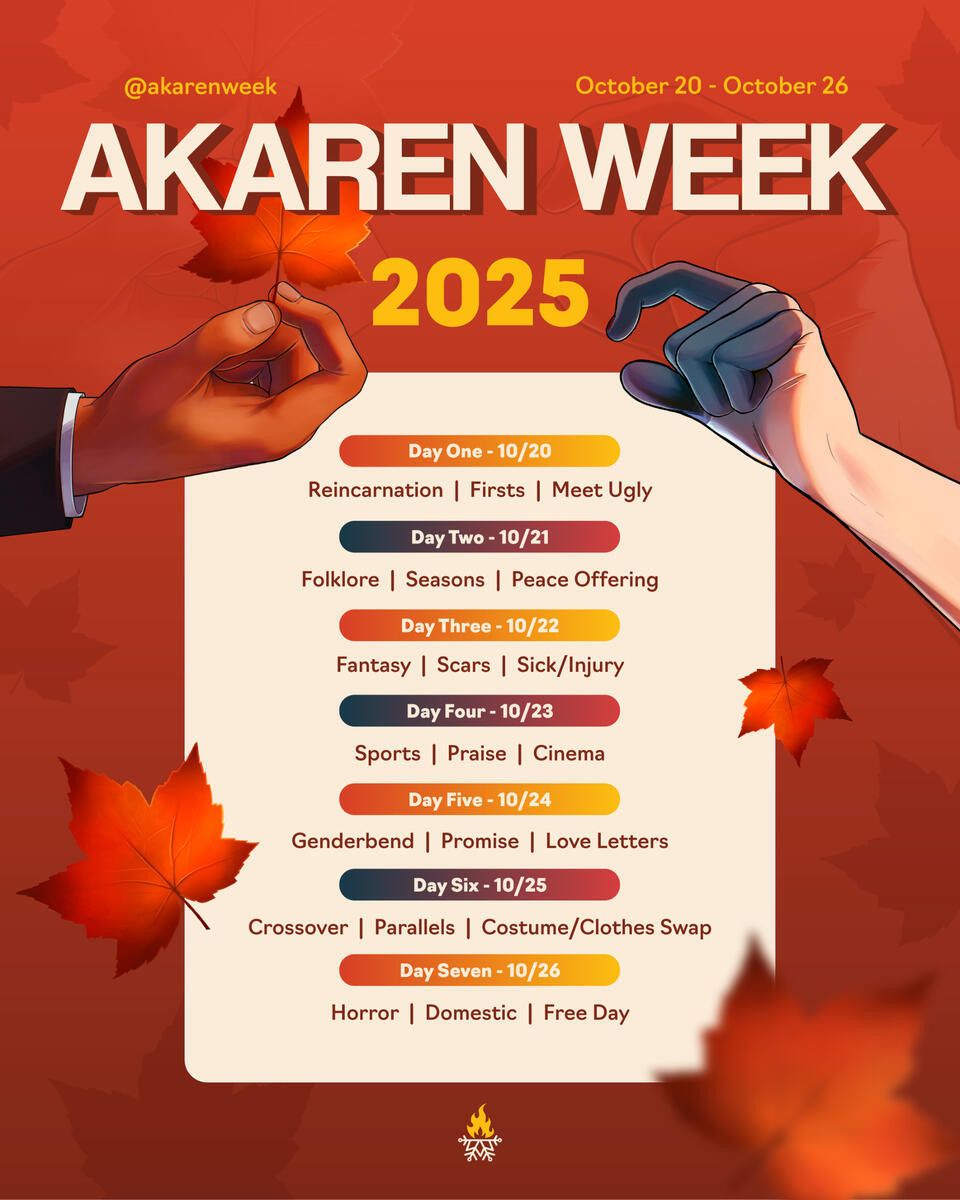 • Use the tag #AkarenWeek2025 or tag @AkarenWeek on Twitter or Tumblr in order for us to repost your creation!